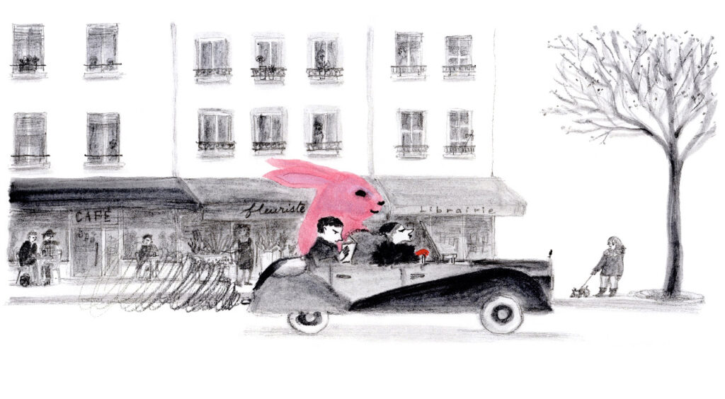 Un lapin rose et deux personnages féminins qui ont fait leur apparition dans mon carnet et qui depuis, vivent de folles aventures. L’histoire continue de s’écrire.